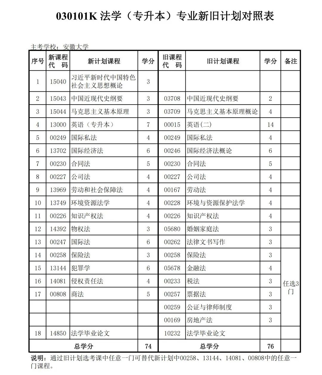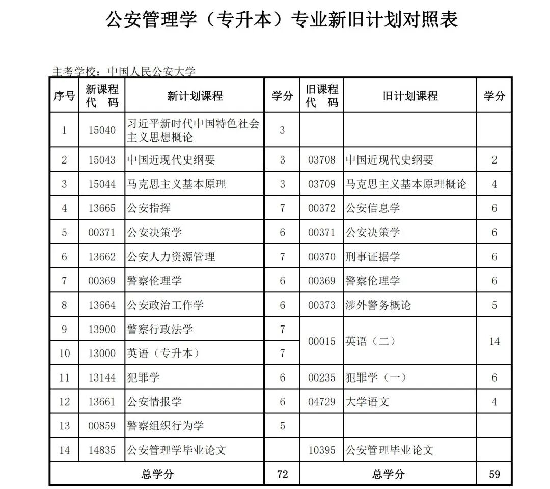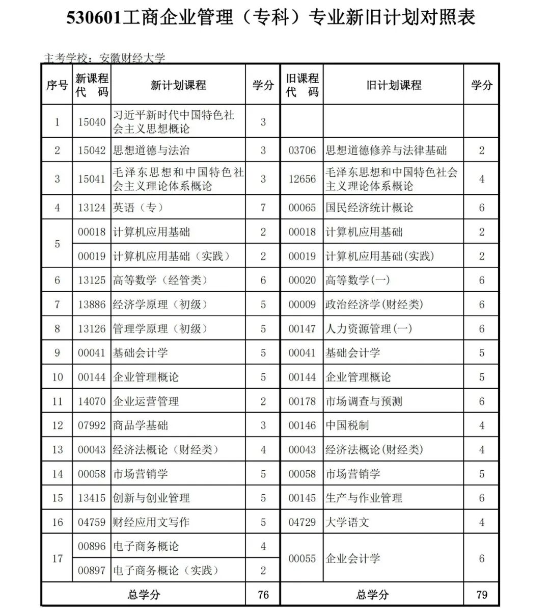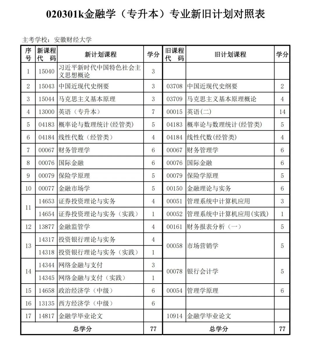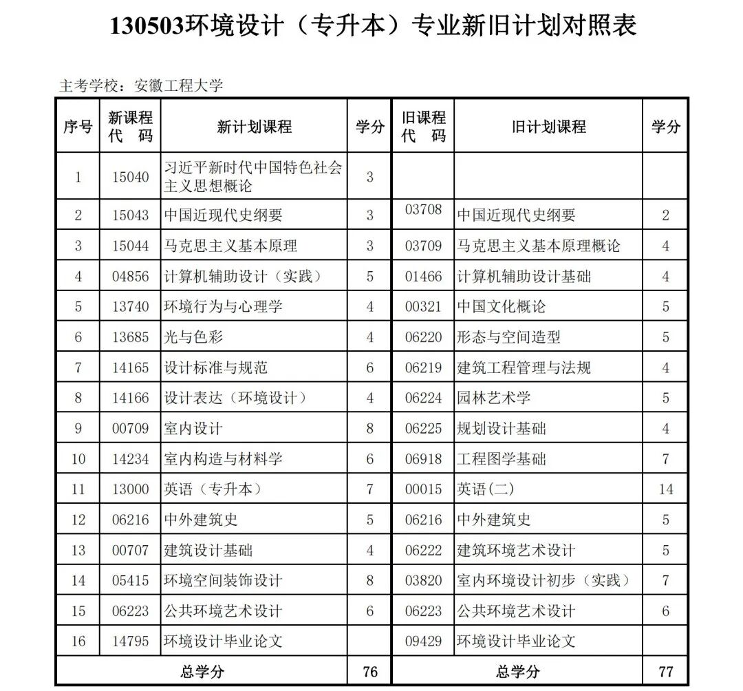 安徽省自学考试新旧考试计划对照表2026版