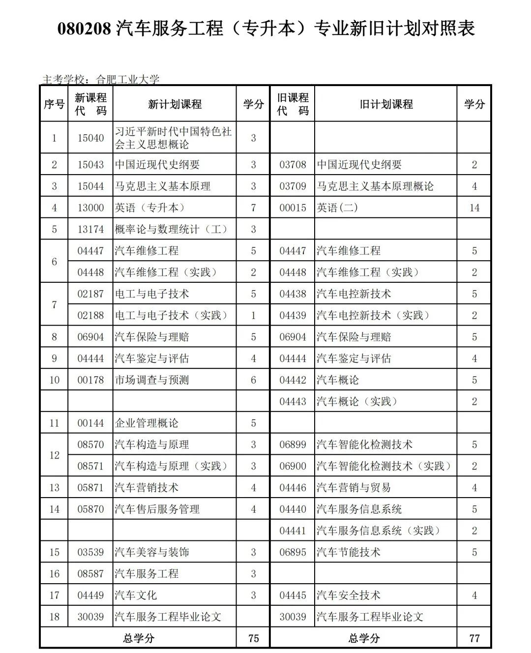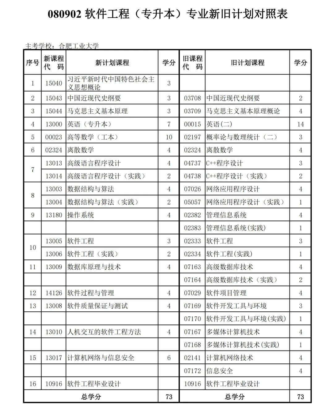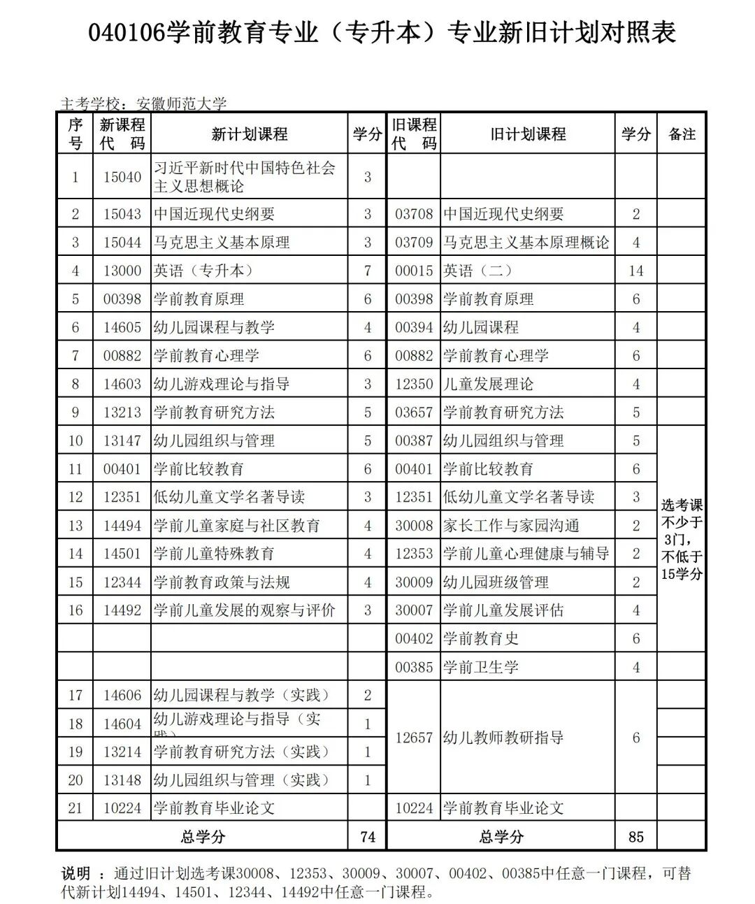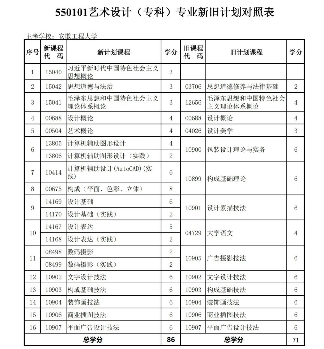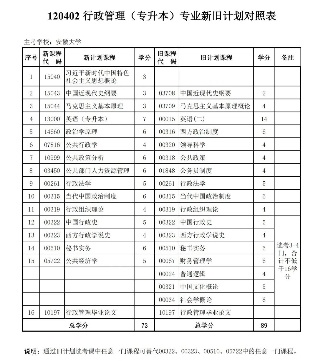 安徽省自学考试新旧考试计划对照表2026版