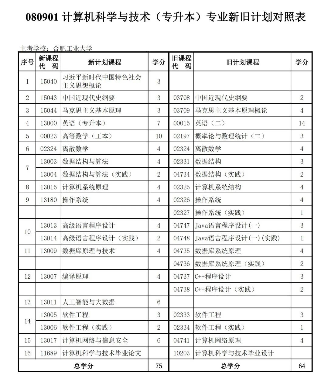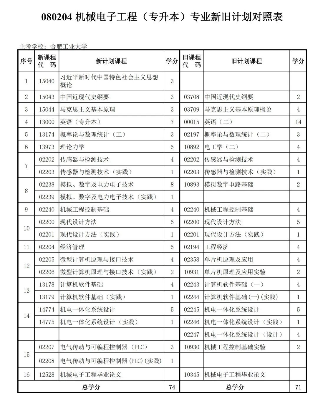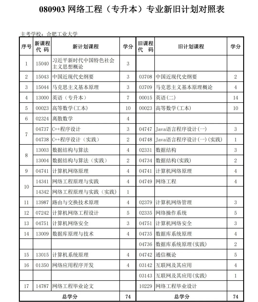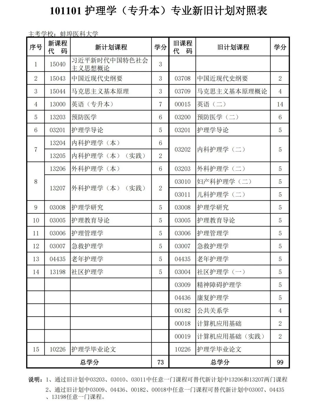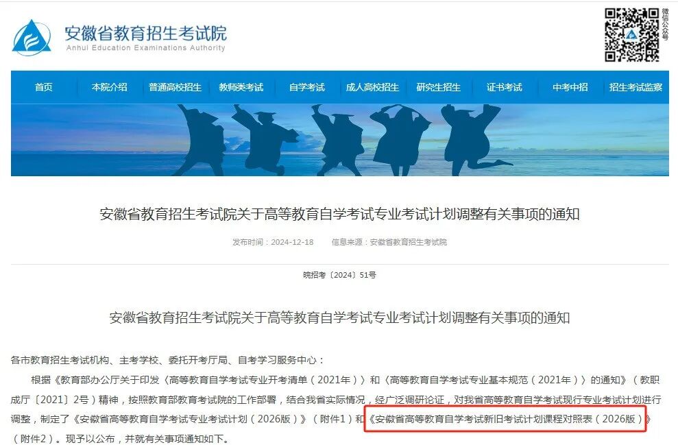 安徽省自学考试新旧考试计划对照表2026版