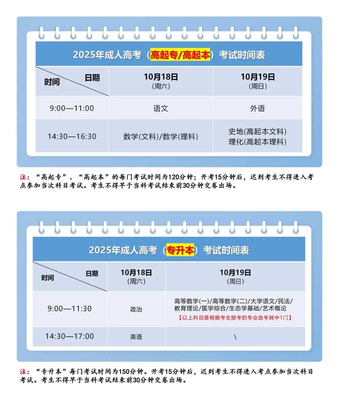 2025年成人高考时间表+考试必备用品清单+考试注意事项(10月18-19日)