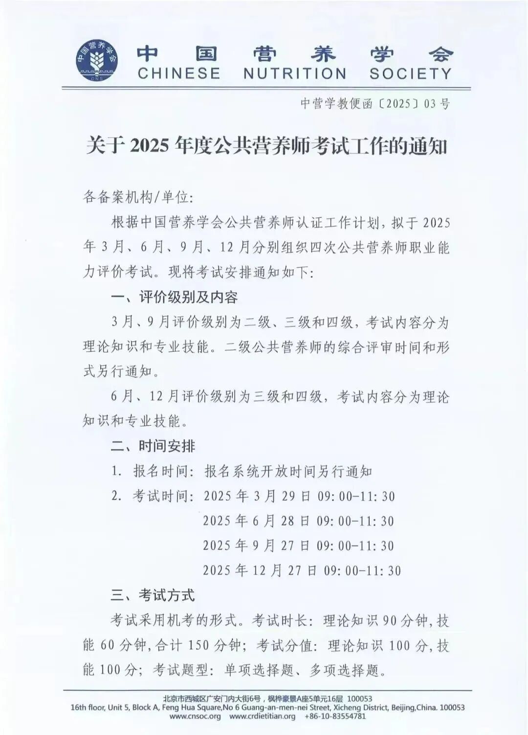 *发布:考试后30个工作日,可在中国营养学会官网查询*